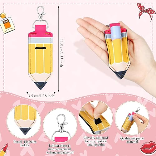 Abbylike 20 Pcs Lipstick Holder Keychain Lip Balm Pencil lip balm holder Pencil Lipstick Organizer Holder Keychain bulk Lip Balm Holder Pouch Portable Lipstick Bag With Hook for Women Teacher Gift