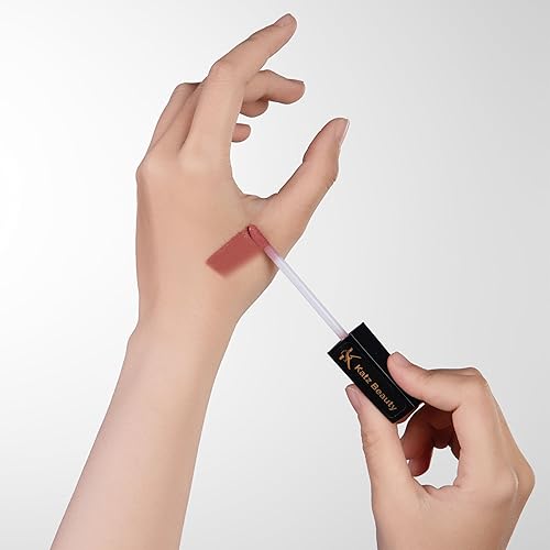 evpct 1Pcs Purple Matte Liquid Lipstick Lip Stain Sets for Women, Peony Flower Mauve Violet Pueple Matte+Lipstick Long Lasting Permanent 24 hr Hours Magic Lipstick 24 Hours original Waterproof, 06#