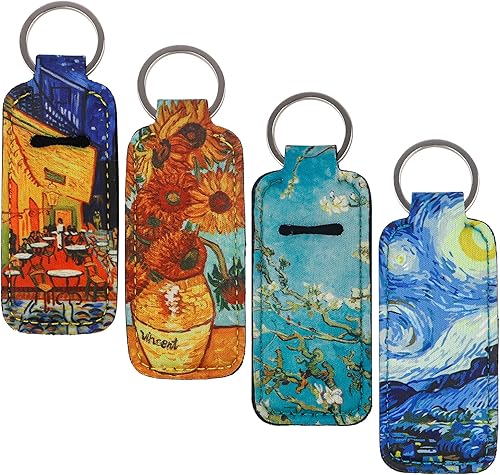 4 Pcs Lip Balm Holder Keychain for Lipstick, Elastic Fabric Sleeve Holder, Lip Balm Key Chain for Women, Girls, Nurse