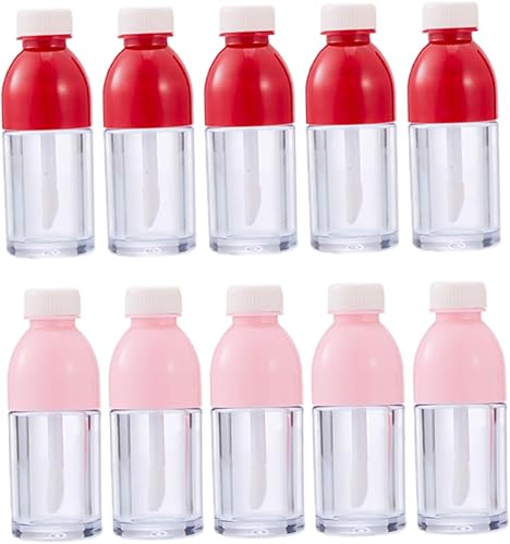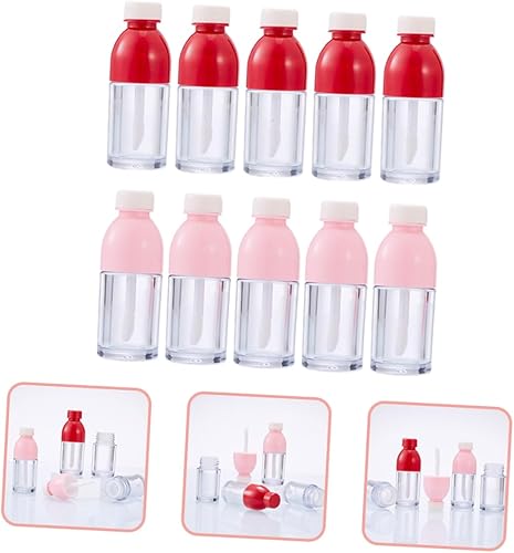 10pcs Lip Gloss Tubes Refillable Empty Bottles Durable Containers with Brush for Daily Cosmetic Use Creative Bottle Design Pink and Red
