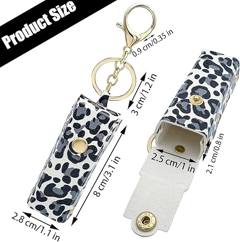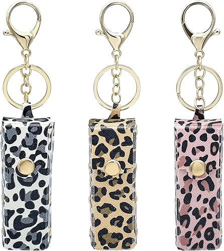 3PCS Leopard Print Lipstick Holder Keychain PU Leather Chapstick Holder Lipstick Organizer Case Portable Lip Balm Sleeve Pouch Lip Gloss Bag Coins Storage Holder for Purse