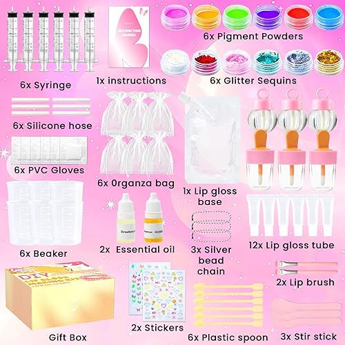 DIY Lip Gloss Making Kit 74 PCS, Yellow Kids Lip Gloss Supplies Set Beginner, Fun Craft Set Moisturizing Base, Gift for Girls, Kids, Teenagers, Women
