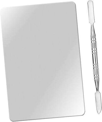 SAFIGLE 2 Sets Stainless Steel Makeup Mixing Pallet Cosmetic Tool for Foundation and Nail Art Sturdy Mixing Tray Spatula for Professional Makeup Artists