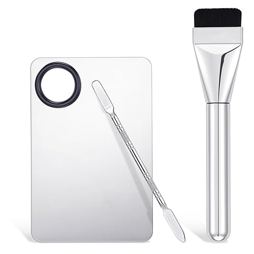 3 PCS Makeup Mixing Palette Set, Stainless Steel Foundation Spatula, Makeup Spatula, Make up Stick, Reusable Foundation Mixing Palette for Facial Cosmetic