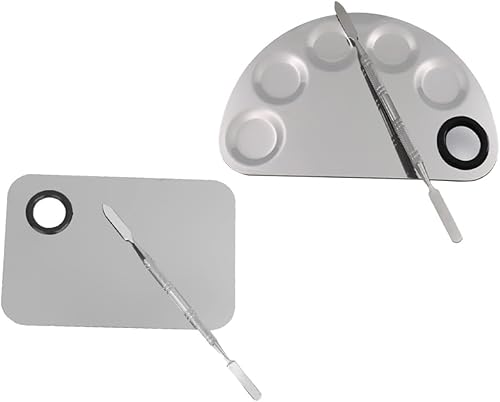GALPADA 2sets Stainless Steel Makeup Mixing Palette Nail Hand Makeup Mixing Palette Tool Professional Cosmetic Spatula