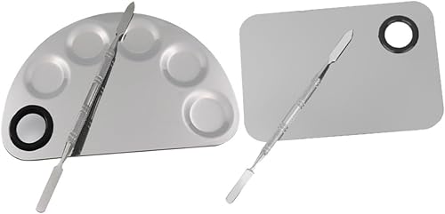 Gatuida 2sets Stainless Steel Makeup Mixing Palette Professional Palette Tool for Blending Colors for Beauty Salons Nail Salons Artists DIY Use