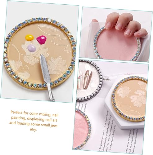2pcs Nail Art Mixing Palette Round Resin Color Tray for Makeup Nail Polish and Craft Display Elegant Gold for Home Salon Use