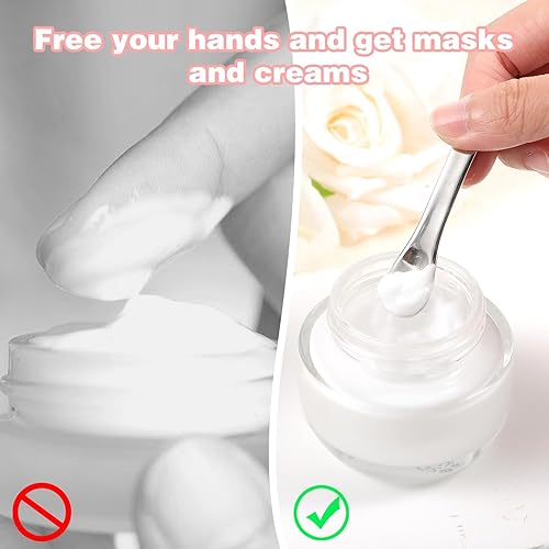 2pcs Mini Metal Cosmetic Spatulas, Reusable Facial Cream Mask Spoon Skincare Spatula Multifunctional Face Mask Applicator Tool for Mixing Sampling Lotions Eye Cream Moisturizers, Silver