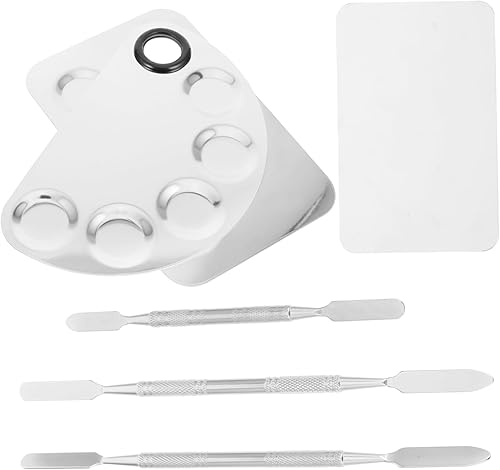 3 Sets Stainless Steel Makeup Mixing Spatulas for Nail Art Cosmetic Palette Includes Half Plates for DIY Professional Use