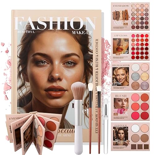 24-Color Eyeshadow Palette - 5-Layer Book-Style Makeup Palette with 67 Pro Shades, Loyaltytrustly Eyeshadow, Blush, Contour, Highlighter, Lipstick In One Travel Friendly Makeup Palette Book (B)