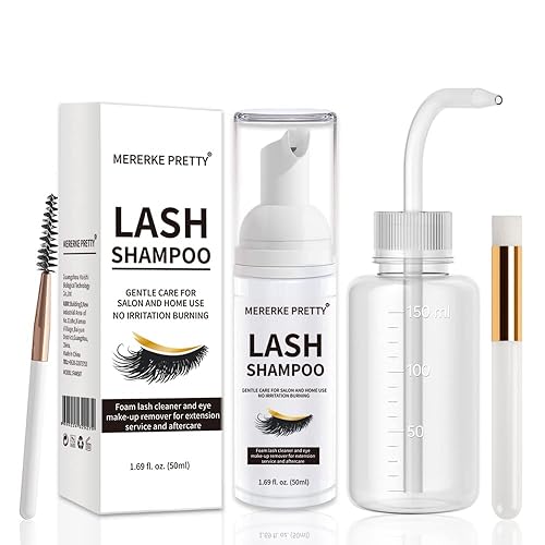 Eyelash Extension Cleanser 50 ml + Brushes + Rinse Bottle Eyelid Foaming Cleanser, Lash Foam Shampoo for Extensions and Natural Lashes, Makeup Remover For Salon and Home Use