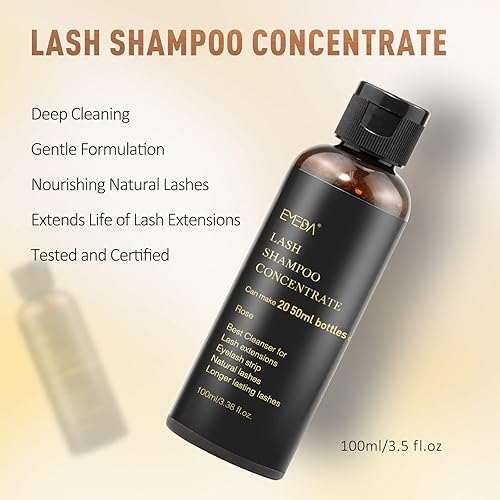 EMEDA Lash Shampoo Concentrate for Eyelash Extensions 100ml Eyelash Extension Cleanser Concentrate Bulk Liquid Kit with Brush Bottle Foam Soap Lash Bath Solution - Makes 20 Bottles 50ml Shampoo (Rose)