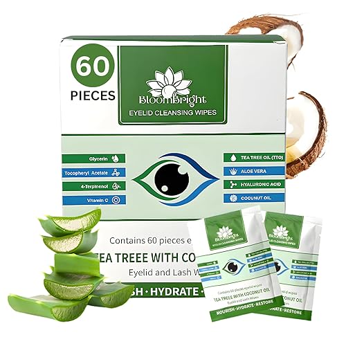 60 Pcs Tea Tree Oil Eyelid Cleansing Lash Wipes with Coconut, Hyaluronic Acid, Green Tea, Chamomile, Aloe Vera – Itchy Stye Eyes Relief – Individually Wrapped Makeup Remover Daily Cleanser (60 Count)