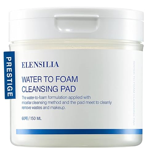 Elensilia Prestige Water to Foam Facial Cleansing Pad (60 pads), LHA Gentle Daily Exfoliant for Sensitive Skin, Micellar Cleansing Water for Makeup Remover, Moisturizing, Nourishing, Acne & Blemish Care