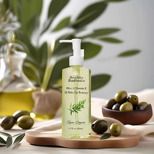 Make Up Remover|100% Vegan-Organic Olive+Vitamin E Pore Control Lightweight Oil Make Up Remover |Liquid Make Up Remover Unscented For All Skin Types| Cruelty Free | 6.7 Fl Oz. 200 ml
