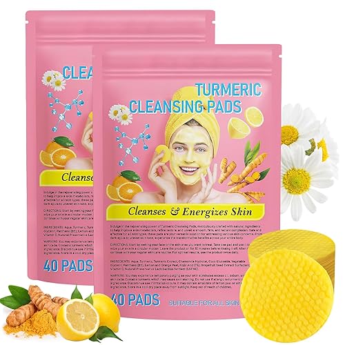 2Pack Turmeric Cleansing Pads, Turmeric Cleansing Pads Helps Balance Skin Oil And Water, Remove Excess Keratin From The Body'S Skin,Turmeric Cleansing Pads for Face & Body(80PCS)…