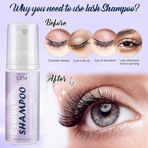 LZM Lash Shampoo Kit with Rechargeable Lash Fan Dryer, Eyelash Extension Cleanser Foam Cleaning Kit for Wash Eyelash Extensions, with Bottle & Brush Oil Free (60ml 2.02 fl oz)