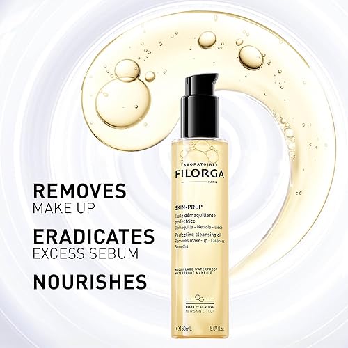 Filorga Skin-Prep Cleansing Oil Makeup Remover with Omega-6 Fatty Acids and Papain Enzymes to Remove Makeup and Deeply Cleanse Skin, 5.07 fl. oz.