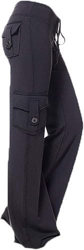 Andongnywell Women's Active Loose Fit Military Multi-PoXKets Wild Cargo Pants Flared Multi-poXKet Trousers