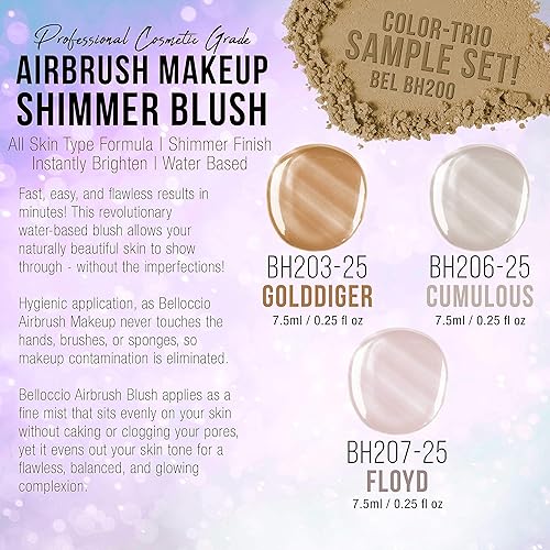 Belloccio's Professional Flawless Airbrush Makeup Shimmer Shade Set (Trio Set) in 1/4 oz. Bottles (NEW FORMULA)