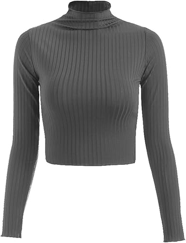 Andongnywell Women's Long-Sleeve Cropped Knitted T-Shirt Sweater Long-Sleeve Lightweight Turtleneck Mockneck