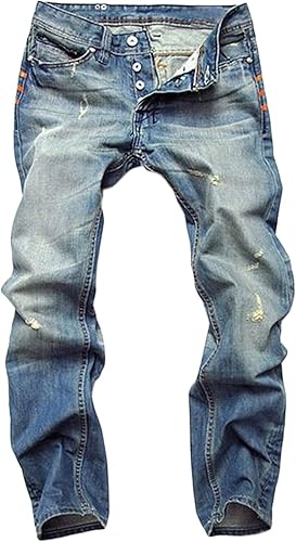 Andongnywell Men Ripped Slim Fit Straight Leg Denim Pants Straight Fit Biker Jeans with Holes Destroyed Skinny Trouser
