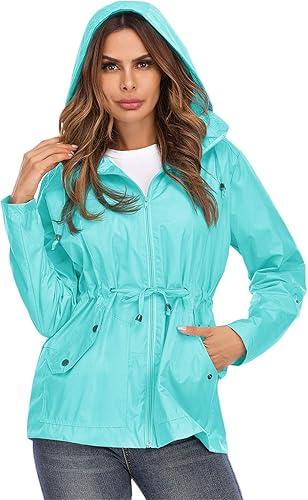 Andongnywell Women's Waterproof Waistcoat Hooded Breathable mesh Outdoor Hiking Rainproof Jackets Outwear