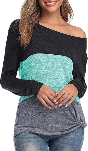 Andongnywell Women's Long-Sleeved one-Neck Loose Twist Casual T-Shirt Casual Soft Knot Side Twists Knit Blouse Top (Black 2,Small)