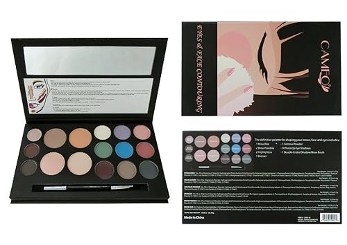 Cameo Cosmetics Eyes and Face Contouring Kit, Light Colors, A 3 Palettes in One Makeup Kit With 16 Bestselling Shades, Step by Step Instructions Included
