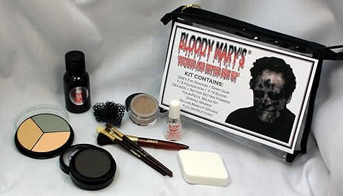 Decayed & Rotted Skin Special Effects Makeup Kit By Bloody Mary - Halloween Costume SFX Makeup - FX Foundation & Blood, Eye Shadow, Setting Powder, Stipple & Application Sponge, 4 Brushes & Spirit Gum