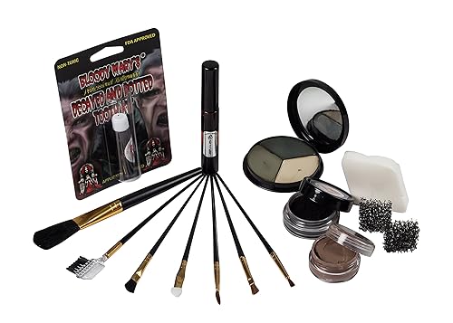 The Aftermath Zombie Starter Makeup Kit By Bloody Mary - Professional Special Effects Supplies - Tri Color Foundation Wheel, Eyeshadow, Tooth Decay, Rotted Teeth, FX Blood, Eyeliner, Sponges, Brushes