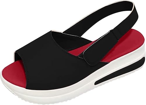 oiangi Slingback Sandals for Women Summer Comfy Open Toe Ankle Strap Hook&Loop Wedge Sandals Solid Shallow Mouth Casual Non-Slip Platform Beach Shoes