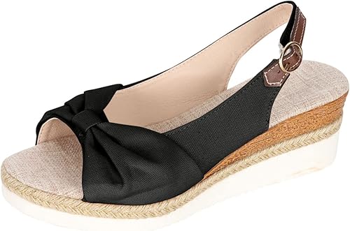 oiangi Wedge Sandals for Women Casual Summer Fish Mouth Open Toe Slingback Buckle Hemp Rope Platform Sandals Comfortable Outdoor Ladies Shoes Sandalias