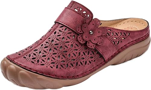 oiangi Comfortable Wedge Sandals for Women Casual Summer Carved Flower Hollow Closed Toe Wedge Slip-on Slipper Soft Baotou Breathable Home Outdoor Shoes