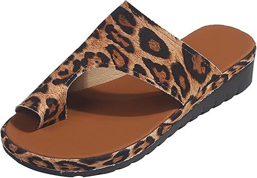 oiangi Non-Slip Slides Sandals for Women Platform Slipper Leopard Print Toe Ring Open Toe Slip-on Flip Flops Summer Comfy Casual Beach Travel Shoes