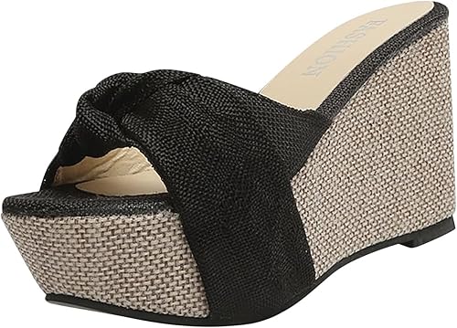 Bowknot Sandal for Women Wedge Platform Slippers Fashion Straps Open Toe Comfortable Slip-on Sandalias Summer Solid Chunky Casual Ladies Shoes