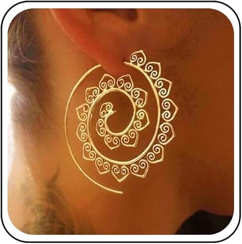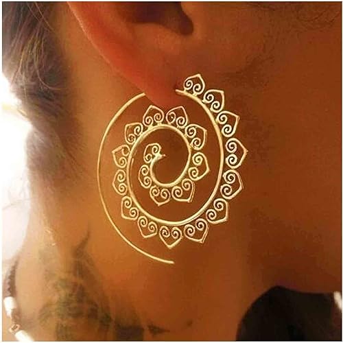 Bohemia Mandala Spiral Earrings Gold Vortex Gear Earrings Exaggerated Hoop Earrings Large Circular Swirl Earrings Indian Tribal Earrings Jewelry for Women