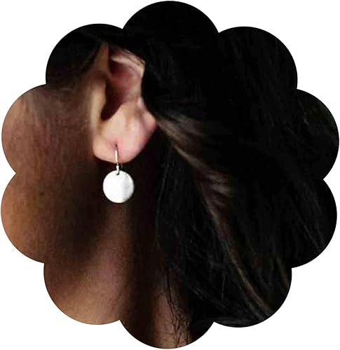 Boho Disc Coin Drop Earrings Tiny Circle Dangle Earrings Silver Smooth Coin Hook Earrings Minimalist Geometric Earrings for Women