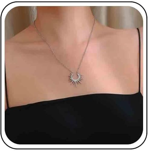 Vintage Sunburst Pendent Necklace Hollow Sunburst Necklace Moonstone Gold Sun Choker Necklace Open Sunburst Necklace Jewelry for Women (Gold)