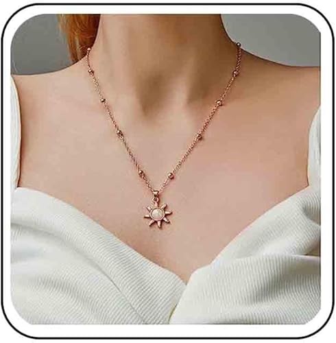Vintage Opal Crystal Sun Pendent Necklace Opal Sunburst Necklace Moonstone Sun Choker Necklace Gold Ball Chain Necklace Jewelry for Women (Gold)