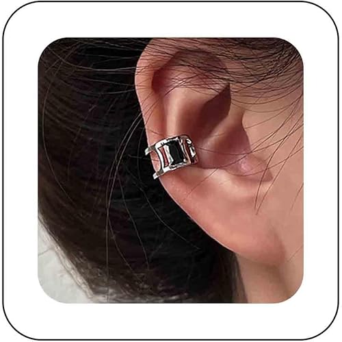 Vintage Crystal Ear Cuff Earrings Black Onyx Cuff Earrings Rhinestone Cartilage Earrings Silver Open Cuff Wrap Earrings Jewelry for Women