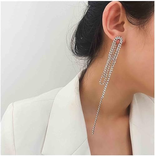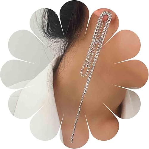 Rhinestone Tassel Ear Jacket Earrings Long Rhinestone Chain Earrings Silver Crystal Tassel Earrings Vintage Chandelier Chain Earrings Luxury Statement Earrings Jewelry for Women