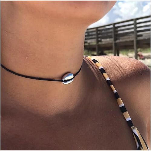Boho Layered Suede Choker Necklace Black Leather Shell Necklace Silver Sea Shell Necklace Short Minimalist Collar Necklace Chain Jewelry for Women Beach Lover Gifts