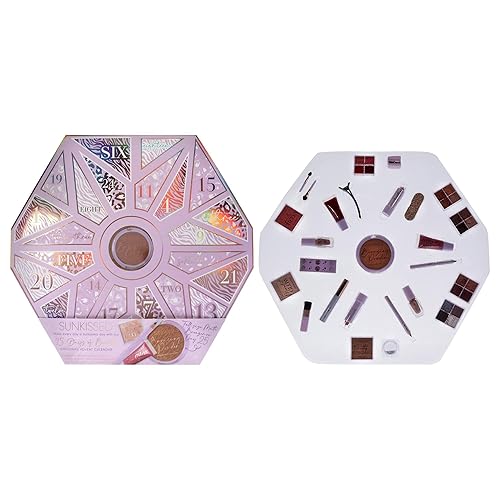 Sunkissed Christmas 25 Days of Beauty - Face, Lips and Eye Makeup - 2 Nail Polishes and 3 Cosmetic Brush Applicators - Vegan Formula - 25 Makeup Products and Accessories - 1 pc Gift Set