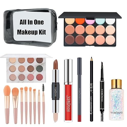 VERONNI Makeup Kit for Girls Women Full Kit ,All In One Makeup Gift Starter Set -Eyeshadow Palettes,Concealer ,Contour ,Lipgloss, Lipliner,Eyeliner,Makeup Brush,Eyebrow Pencil ,Travel Bag for Teens Birthday Christmas