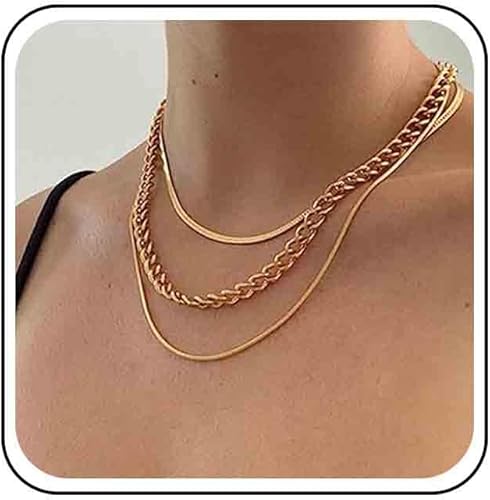 Vintage Layered Snake Chain Necklace Chunky Cuban Chain Necklace Gold Thick Chain Necklace Punk Curb Chain Necklace Jewelry for Women
