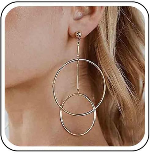 Vintage Hollow Circle Dangle Earrings Exaggerated Circle Drop Earrings Large Circle Hoop Earrings Gold Bar Earrings Jewelry for Women