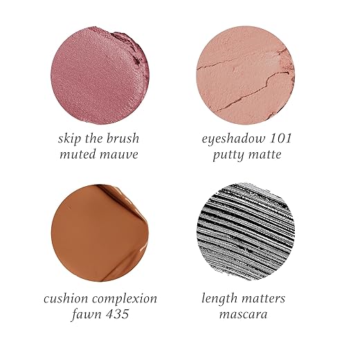 Julep Everyday Easy 4 Piece Kit with Eyeshadow 101 in Putty Matte, Length Matters Lengthening Mascara, Skip The Brush Cream to Powder Blush in Muted Mauve, & Cushion Complexion Concealer in Fawn