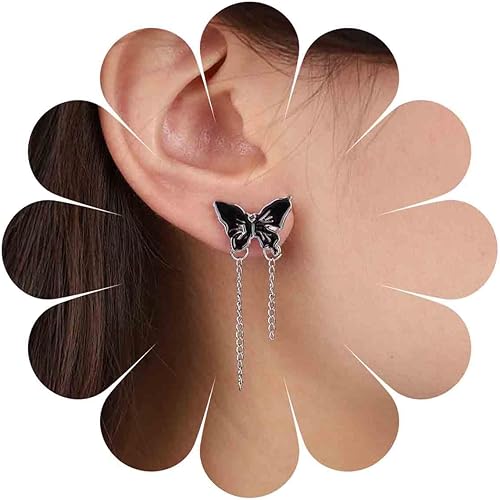 Punk Black Butterfly Drop Earrings Acrylic Butterfly Tassel Chain Earrings Silver Long Butterfly Earrings Black Butterfly Stud Earrings Jewelry for Women