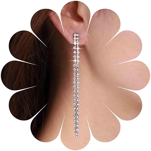 Vintage Rhinestone Chandelier Drop Earrings Long Crystal Chain Earrings Silver Tennis Chain Tassel Earrings Shine Cz Dangle Earrings Jewelry for Women